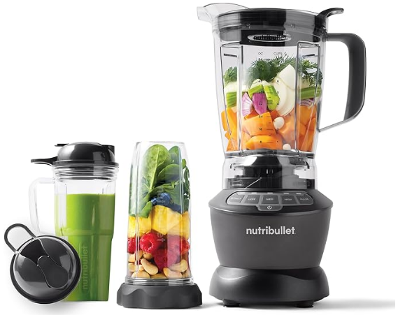 | 4. NutriBullet Full-Size Combo NBF50500 | Combo (Full + Personal) | 1200 W | 64 oz + Cups | Smoothies + multi-use |
